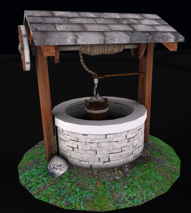 A well I modelled, mapped, and textured for use as a decoration in Secondlife.