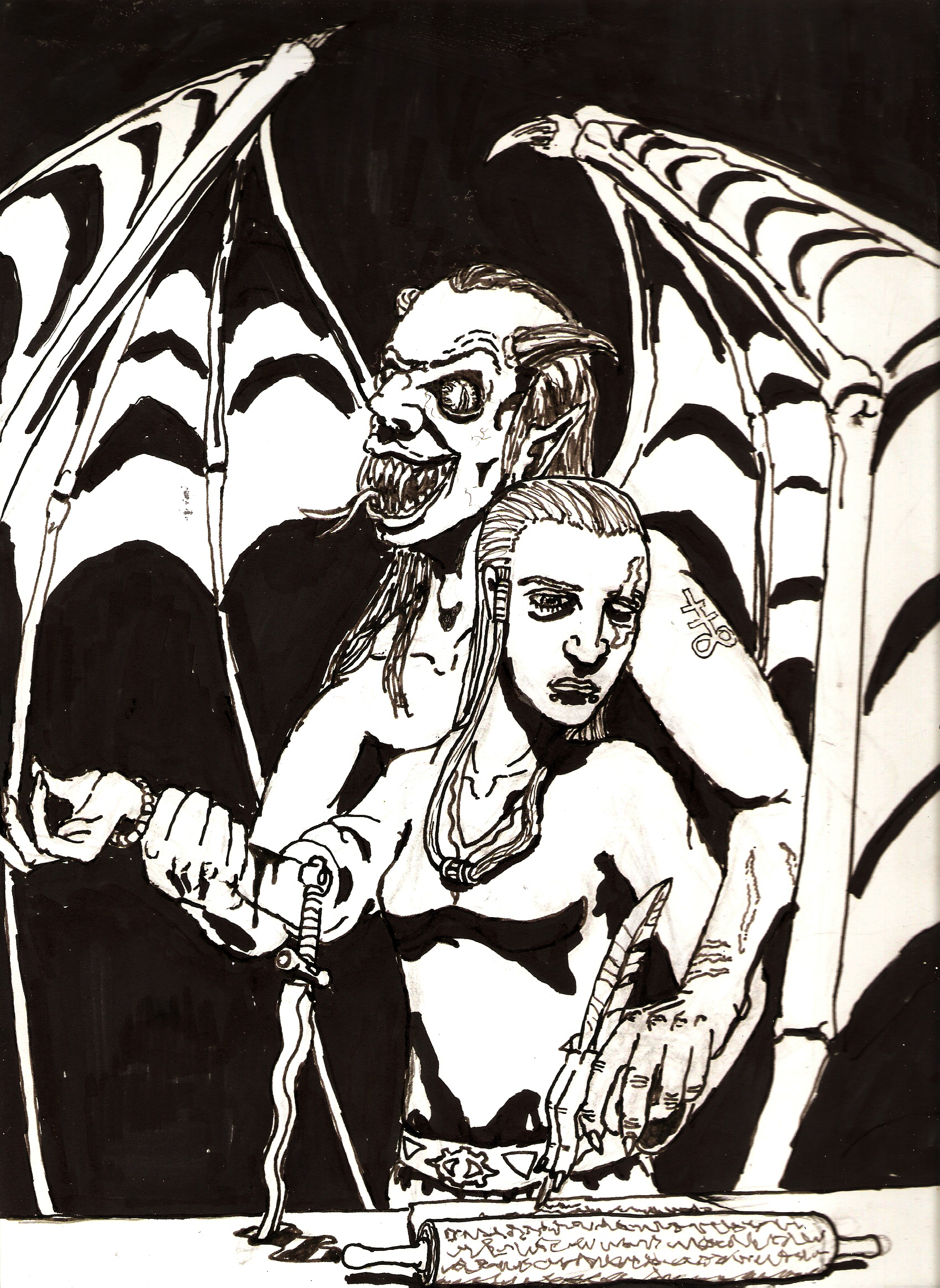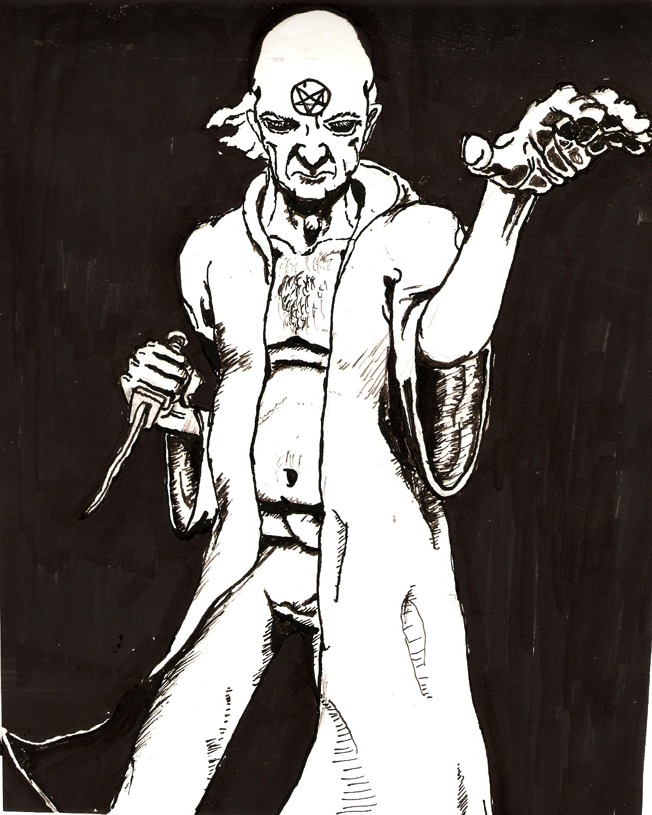 A few drawings I did on the subject of cultists. Pencil, pen, black marker.